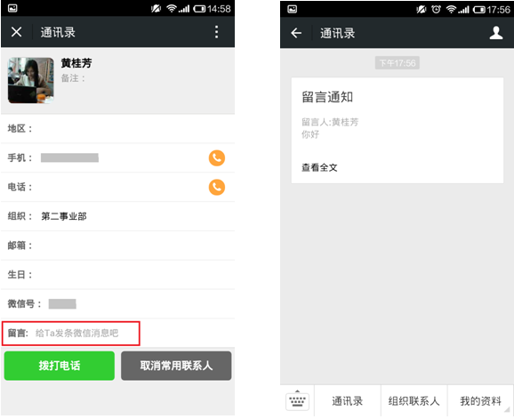 通讯录的【即时留言】,不是微信好友的公司同事也能实现简单交流!