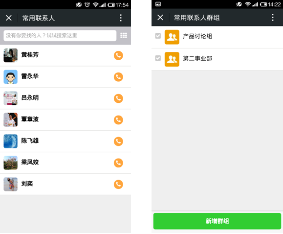 自己明明没有设置过常用联系人,但是里面已经有一溜儿的联系人在里面了是怎么回事?!那是因为你每次在企业号里@某个人,那个人就默认成为你的常用联系人了。