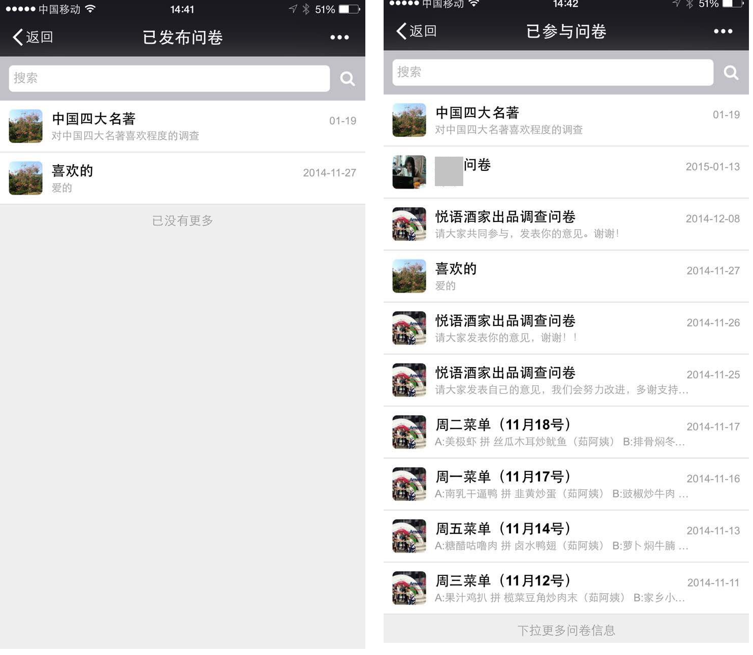 在【我的问卷】选择“已参与问卷”、"未参与问卷"可查看相关问卷,也可进行搜索