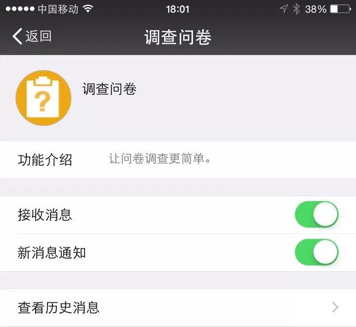 2、没有收到通知提醒?确认下:新消息通知有没有打开。点击问卷调查应用右上角的小图标,检查:新消息通知 是否为打开状态就可