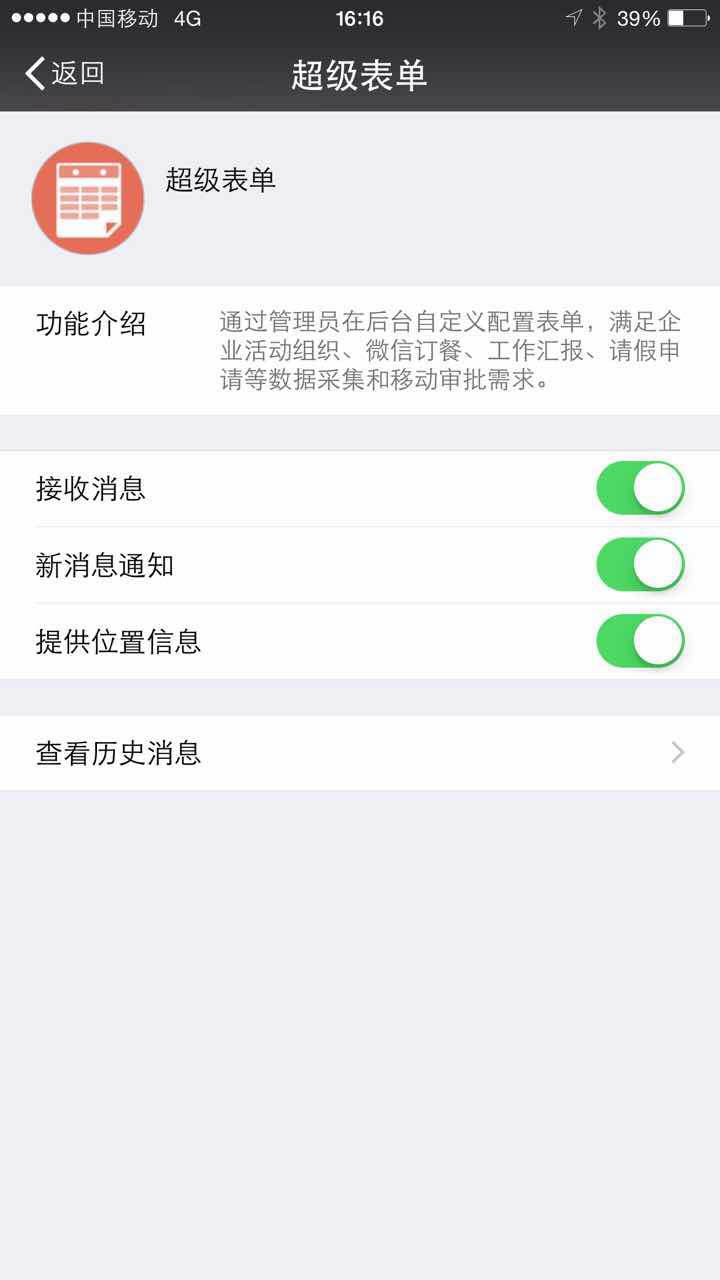 2、没有收到通知提醒?确认下:新消息通知有没有打开。点击超级表单应用右上角的小图标,检查:新消息通知 是否为打开状态就可