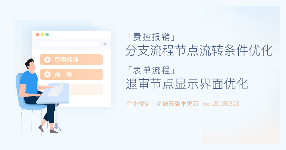企微云平台更新导读 ① 费控报销 分支流程节点流转条件优化。流转条件新增「费用标准」和「预算」两个字段,通过判断「是否超额」来选择流转节点。能够解决因报销费用标准/部门...