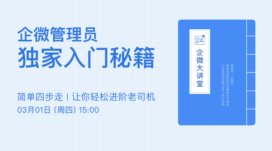 30分钟带你快速了解企微云各应用价值,掌握企业微信后台的基本操作,更有超实用的企业移动办公解决方案等你来领取哦~ ...