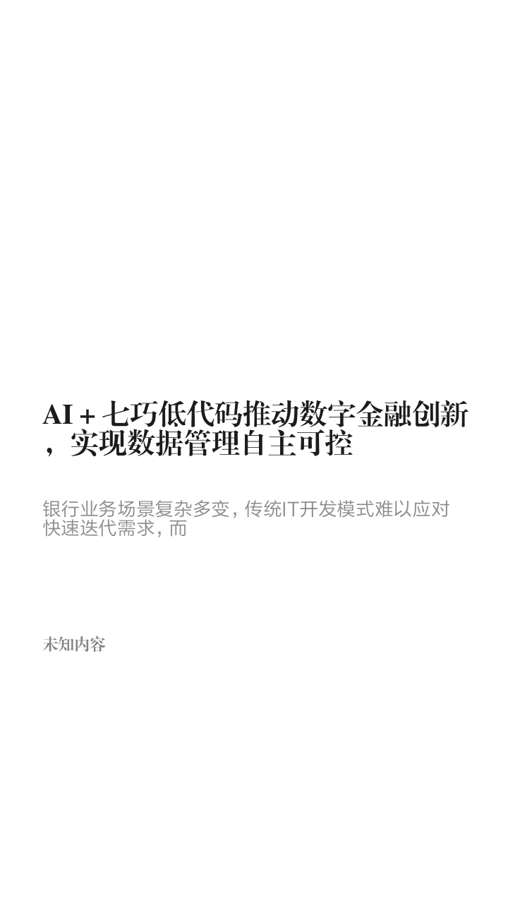 这些痛点相互交织,形成了制约金融银行业数据库升级的复杂网络。单一技术方案的优化往往难以系统性解决问题,需要从架构设计、开发模式、运维体系到智能化应用的全栈创新。"AI+七巧低代码"作为融合性技术范式,有望通过降低开发门槛、提升自动化水平和增强认知能力,为这些痛点提供集成解决方案,推动金融数据库管理系统向更高效、更安全、更智能的方向演进。
