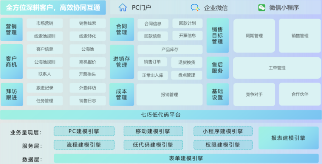 道一云七巧低代码所带来的,不仅仅是某个产品的部署,而是在管理层、经营层、员工层、客户层的立体化价值渗透: